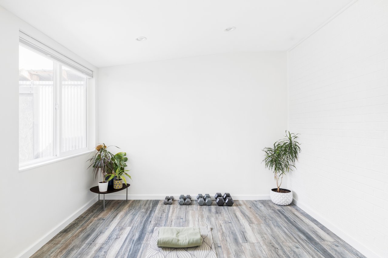 Off the kitchen, a sunroom wrapped with windows serves as a separate dining area or additional living space, with a sliding glass door that leads to the backyard. To the right, the dining space flows into a combined laundry and pantry area, which then leads into a private flex room—ideal for a home office, gym, or creative studio. Down the hall from the living room, you’ll find three comfortable bedrooms and a remodeled full bathroom, featuring a modern vanity and a heated, defogging mirror with adjustable lighting tones. A Nest thermostat and an attached one-car garage add convenience, while the single-level floor plan keeps everything within easy reach.