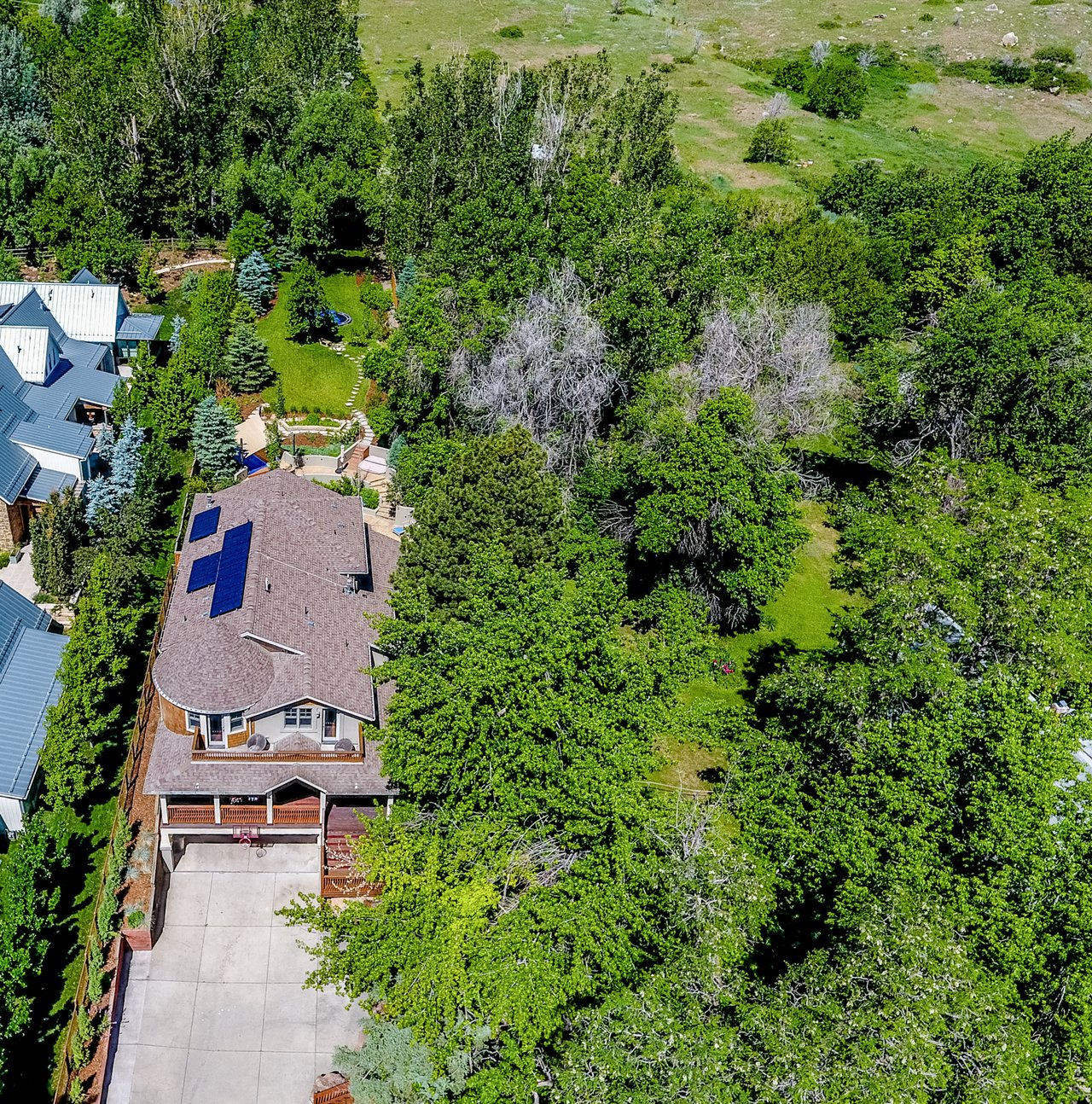 Out front, the fabulous covered porch overlooks an extra-wide driveway and two-car garage, which provide ample parking for friends and family. Towering pine trees and shingled siding make a delightful first impression in this impeccable North Boulder home.