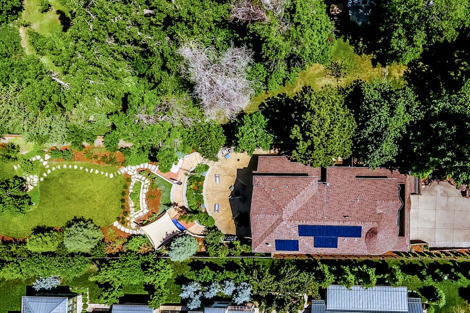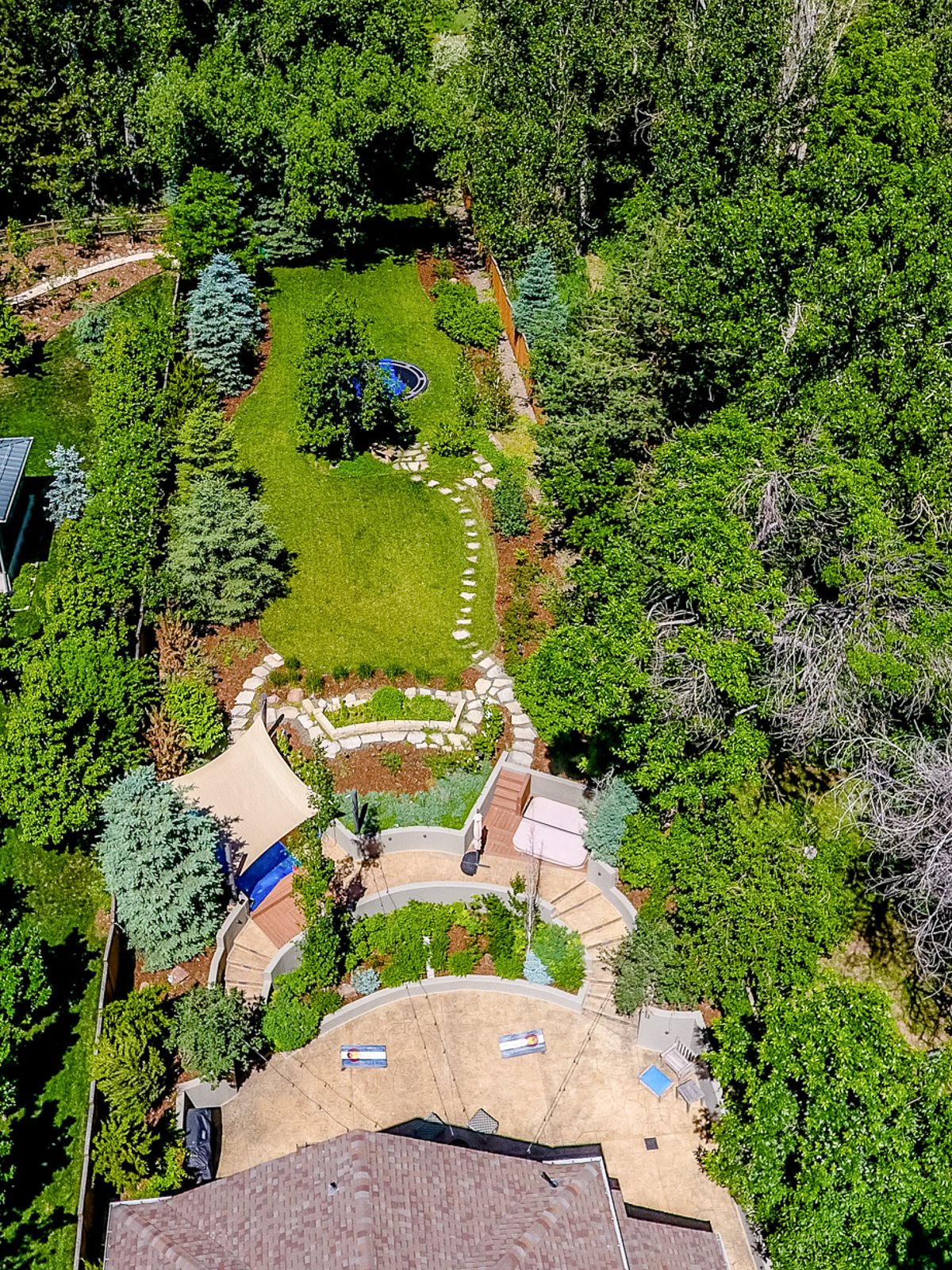 In the adjacent great room, a rustic stone fireplace and reclaimed wood wall invite you to relax and unwind while wide NanaWall doors deliver seamless indoor-outdoor enjoyment. With a rare position abutting breathtaking open space, this nearly half-acre lot offers unsurpassed peace and privacy. The extensive professional landscaping and tiered hardscaping create an idyllic hideaway, featuring a hot tub, resistance swimming pool, in-ground trampoline, professionally constructed treehouse and extra-large paved patio and lawn areas. Beautiful landscape lighting makes the space very usable at any time of day, and especially dramatic at night. Watching Boulder’s lights twinkling below in this park-like compound is absolutely magical.